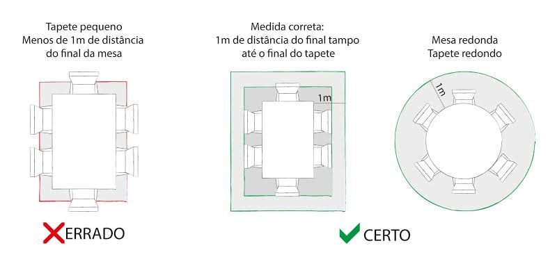 Tapete ideal para sala de jantar é aquele que tem espessura fina, pelo baixo e que seja fácil de limpar. Esses atributos tornam os tapetes resistentes, e não enroscam com os pés das cadeiras, além de agregar conforto térmico e acústico.