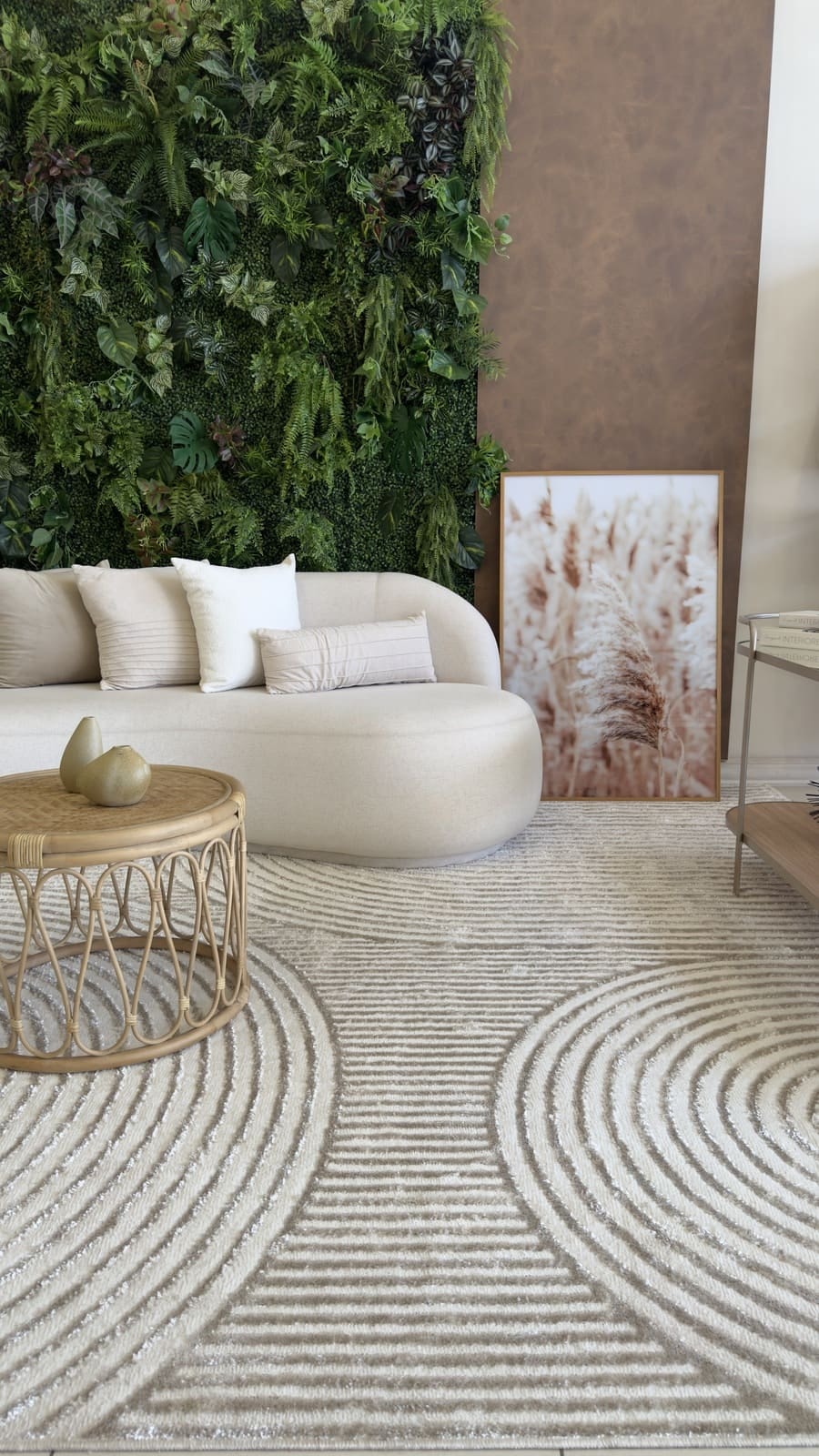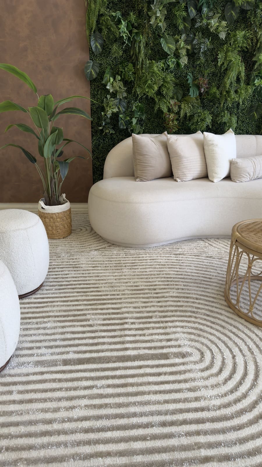 Na sala de estar, nos baseamos pela medida do sofá, pois o tapete sempre tem que ser maior que sofá sobrando de 15 a 30cm de cada lado do sofá e a partir de 30cm embaixo do sofá, se neste ambiente também tiver poltronas e outros móveis que compõe o ambiente, o ideal é que essas peças também fiquem em cima do tapete. Porque o tapete tem função definir o ambiente e ampliá-lo.