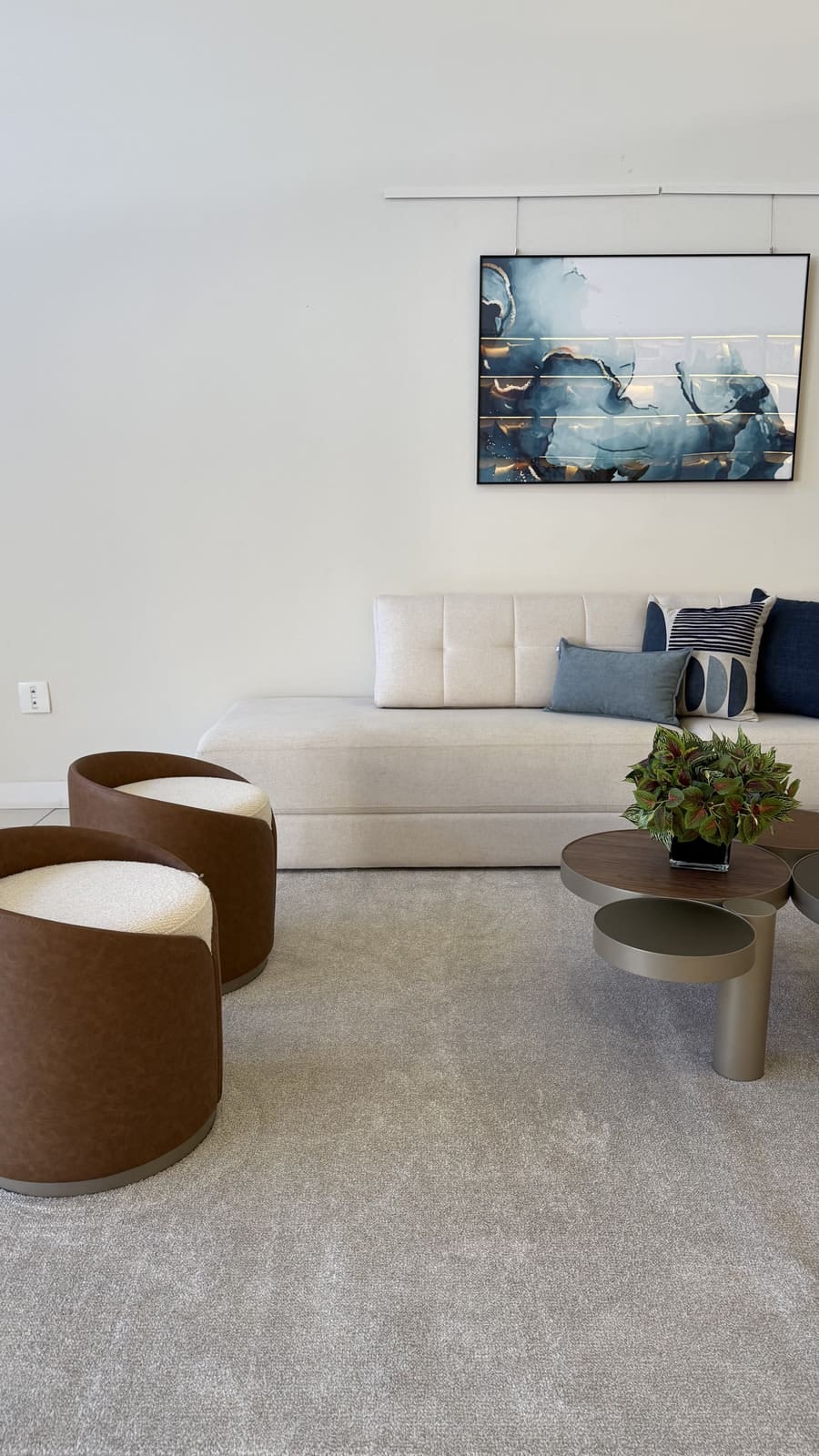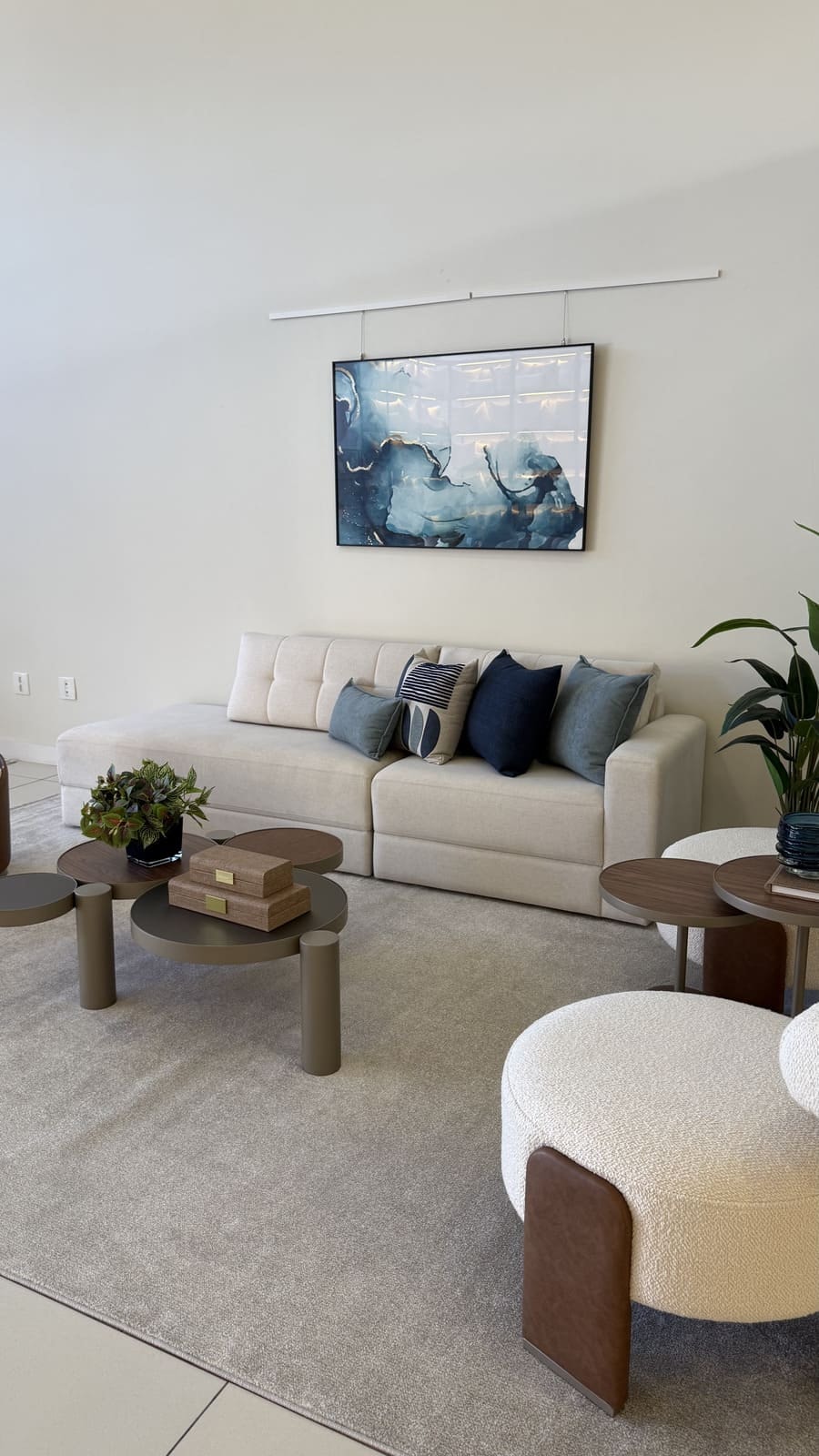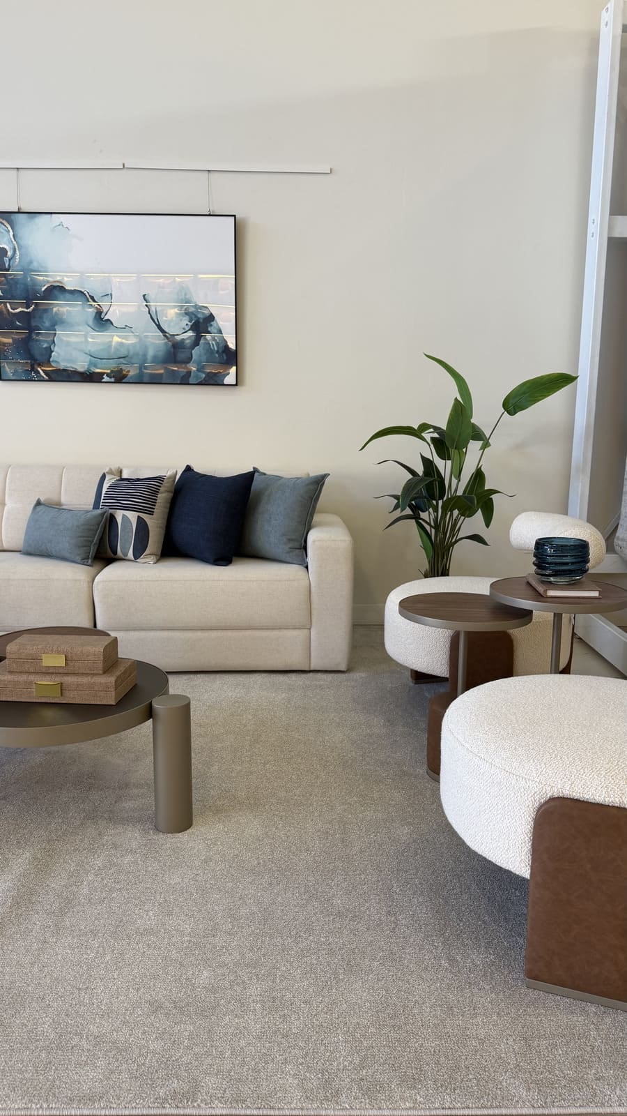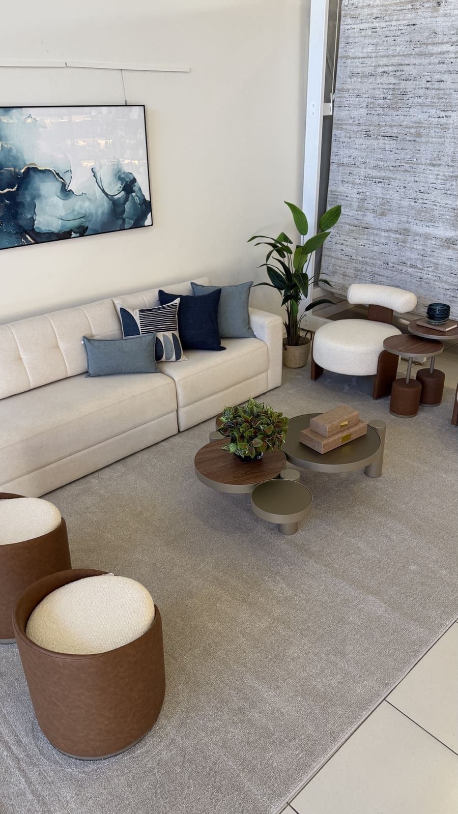 Na sala de estar, nos baseamos pela medida do sofá, pois o tapete sempre tem que ser maior que sofá sobrando de 15 a 30cm de cada lado do sofá e a partir de 30cm embaixo do sofá, se neste ambiente também tiver poltronas e outros móveis que compõe o ambiente, o ideal é que essas peças também fiquem em cima do tapete. Porque o tapete tem função definir o ambiente e ampliá-lo.